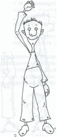 Тренираме една след друга двете раменни стави. Всяка ръка въртим отначало по часовниковата стрелка, после обратно.
